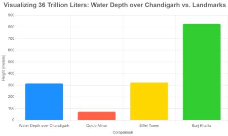 Chandigarh, Punjab’s shared capital, covers 114 square kilometres. If the 36 trillion litres were poured over it, the city would drown under: